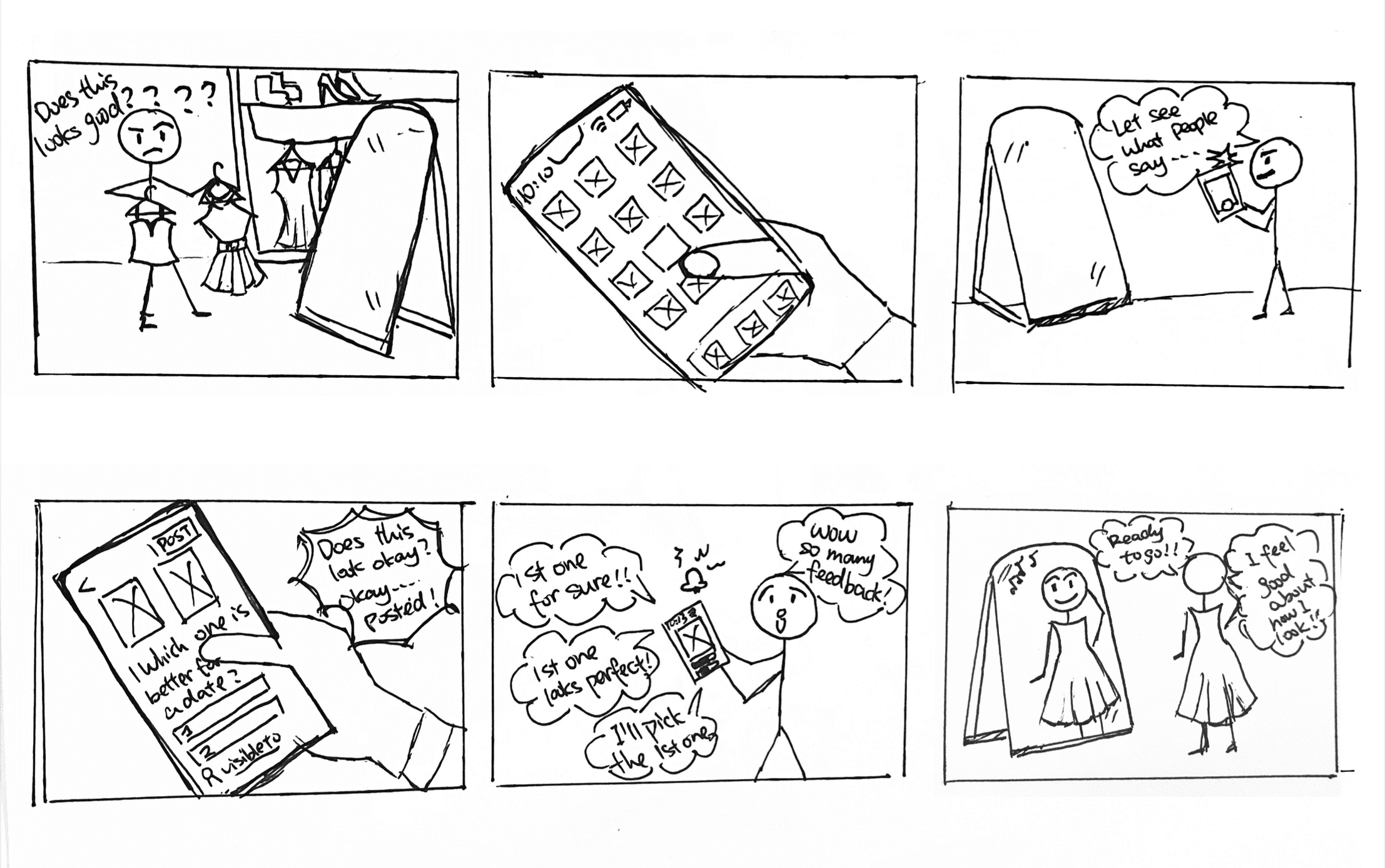 We created journey maps and storyboards to visualize how users currently decide between outfits and where frustration or hesitation appears. This helped us identify where Fitzy could meaningfully improve that experience and understand how the decision-making flow differs across users.