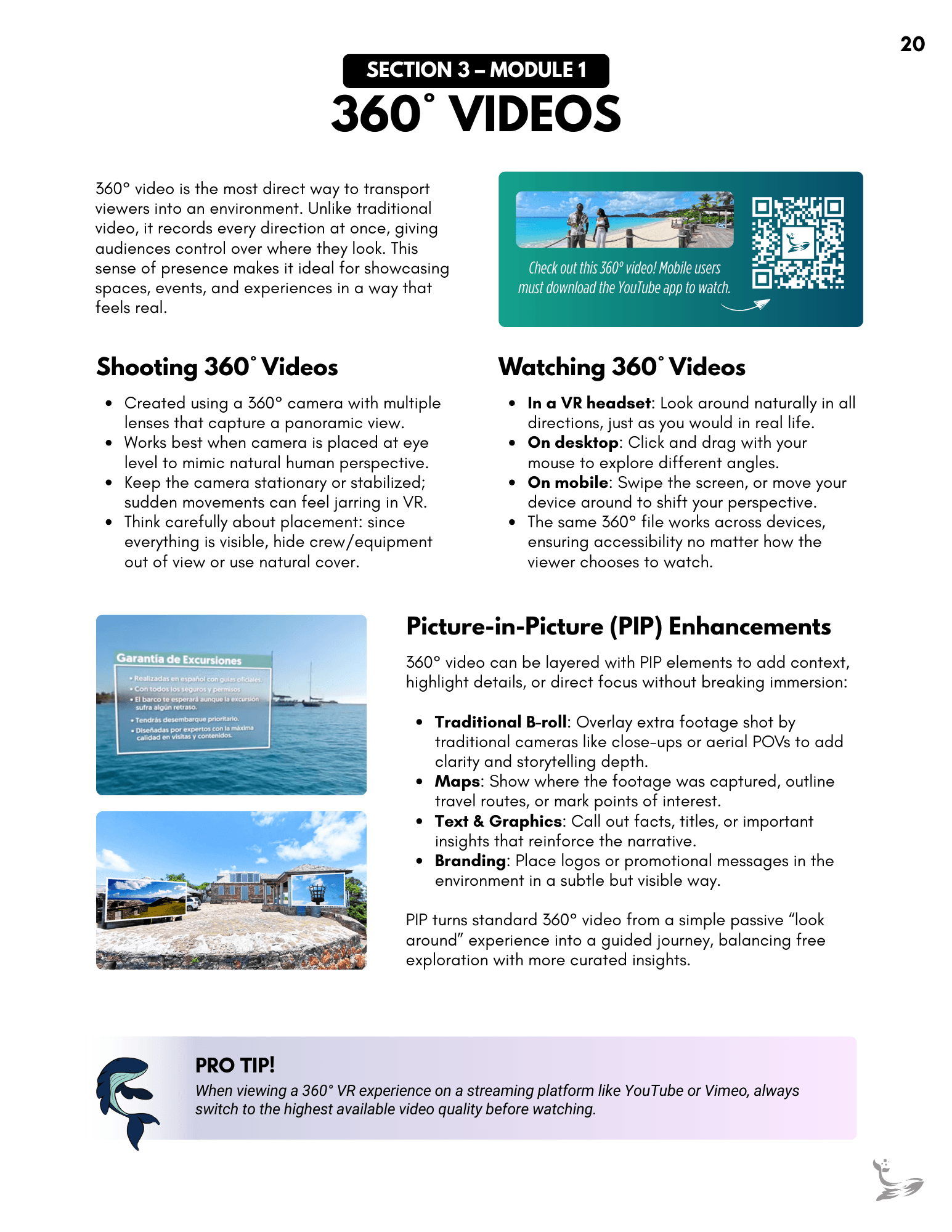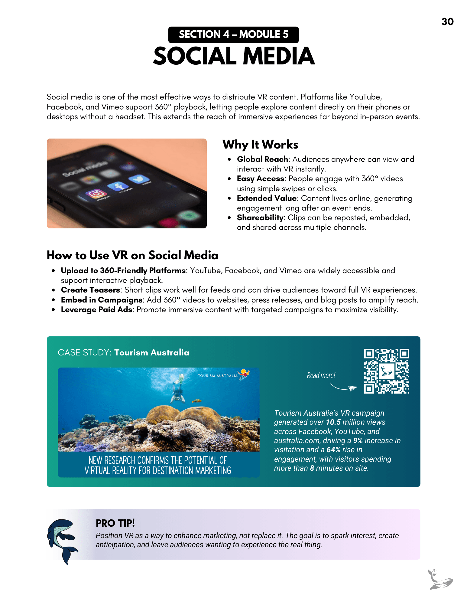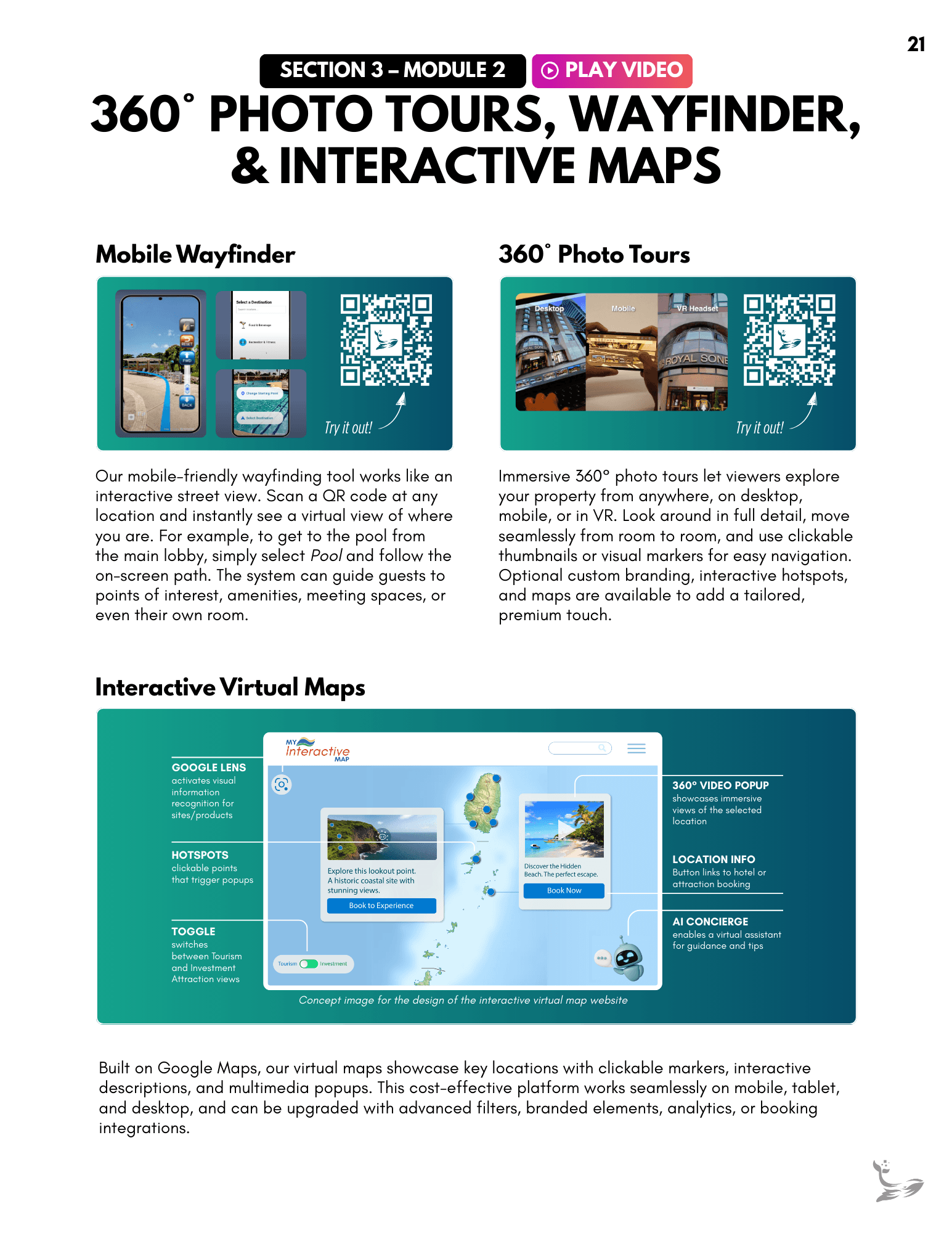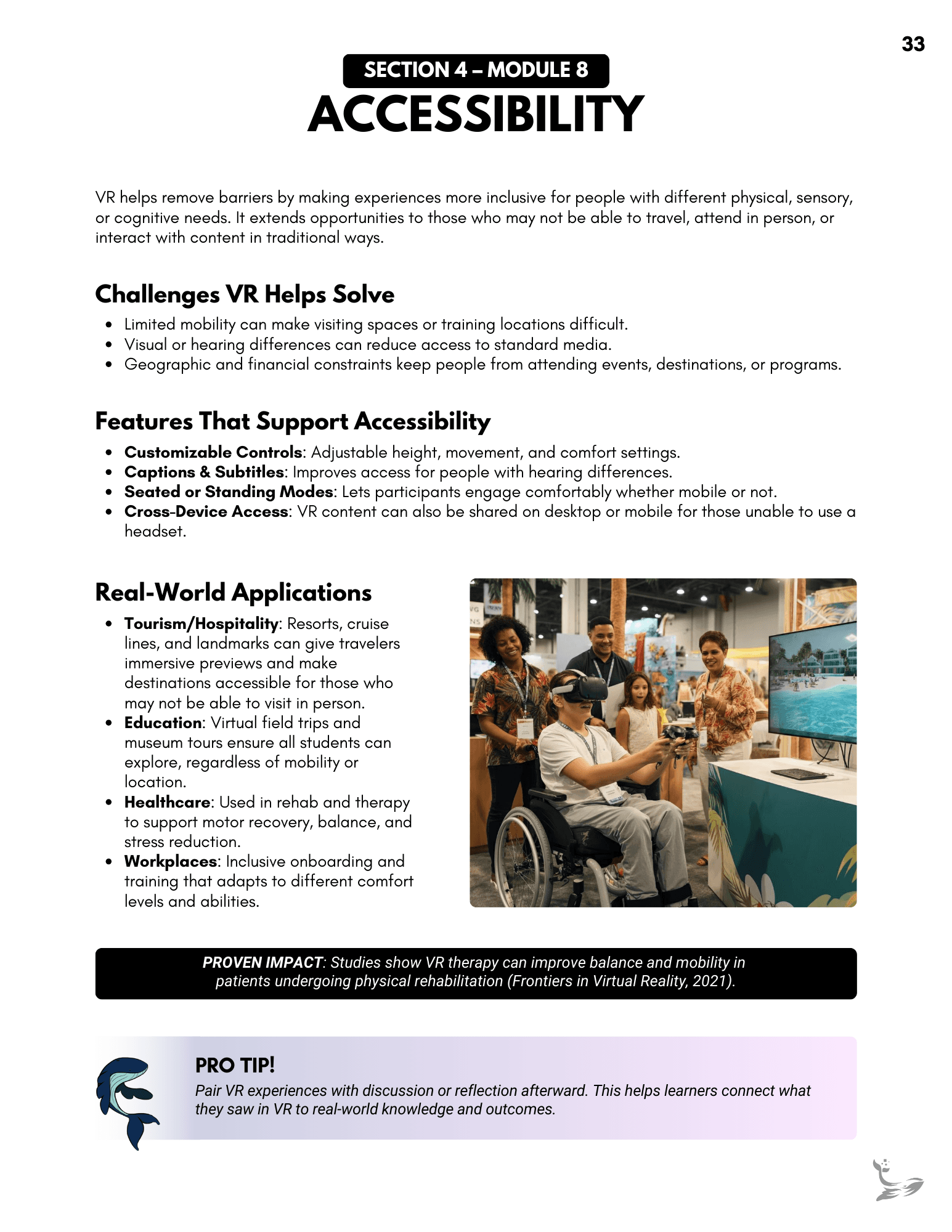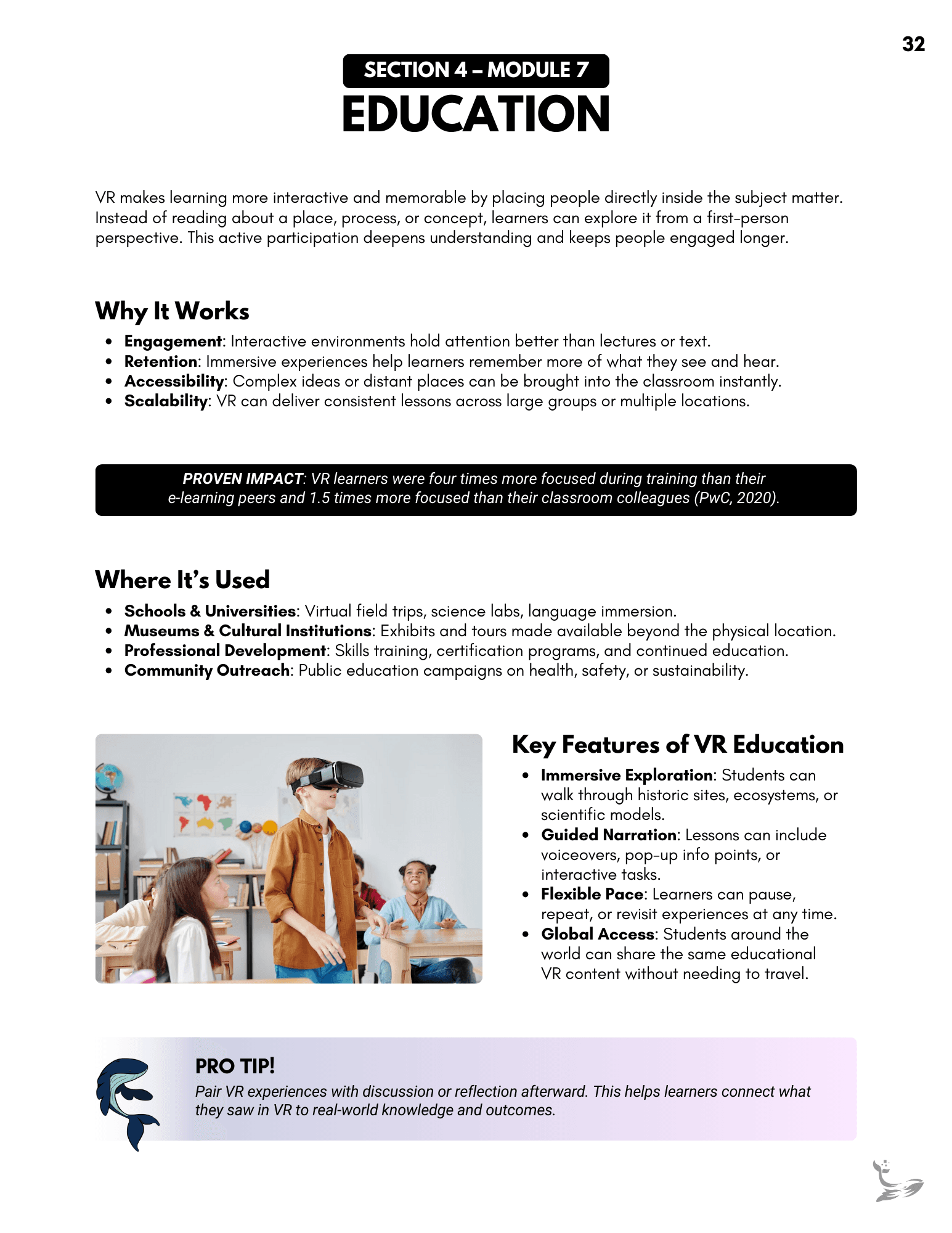 A full client-facing onboarding guide created to support headset setup, VR navigation, and best-practice strategies for using immersive content. It organizes everything into clear modules, giving clients an always-available reference they can revisit as they introduce VR to their teams. Links throughout the document connect directly to relevant moments in the instructional video, creating a cohesive learning experience.