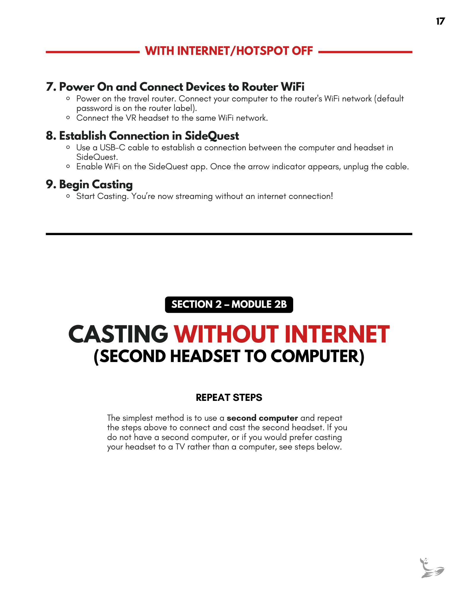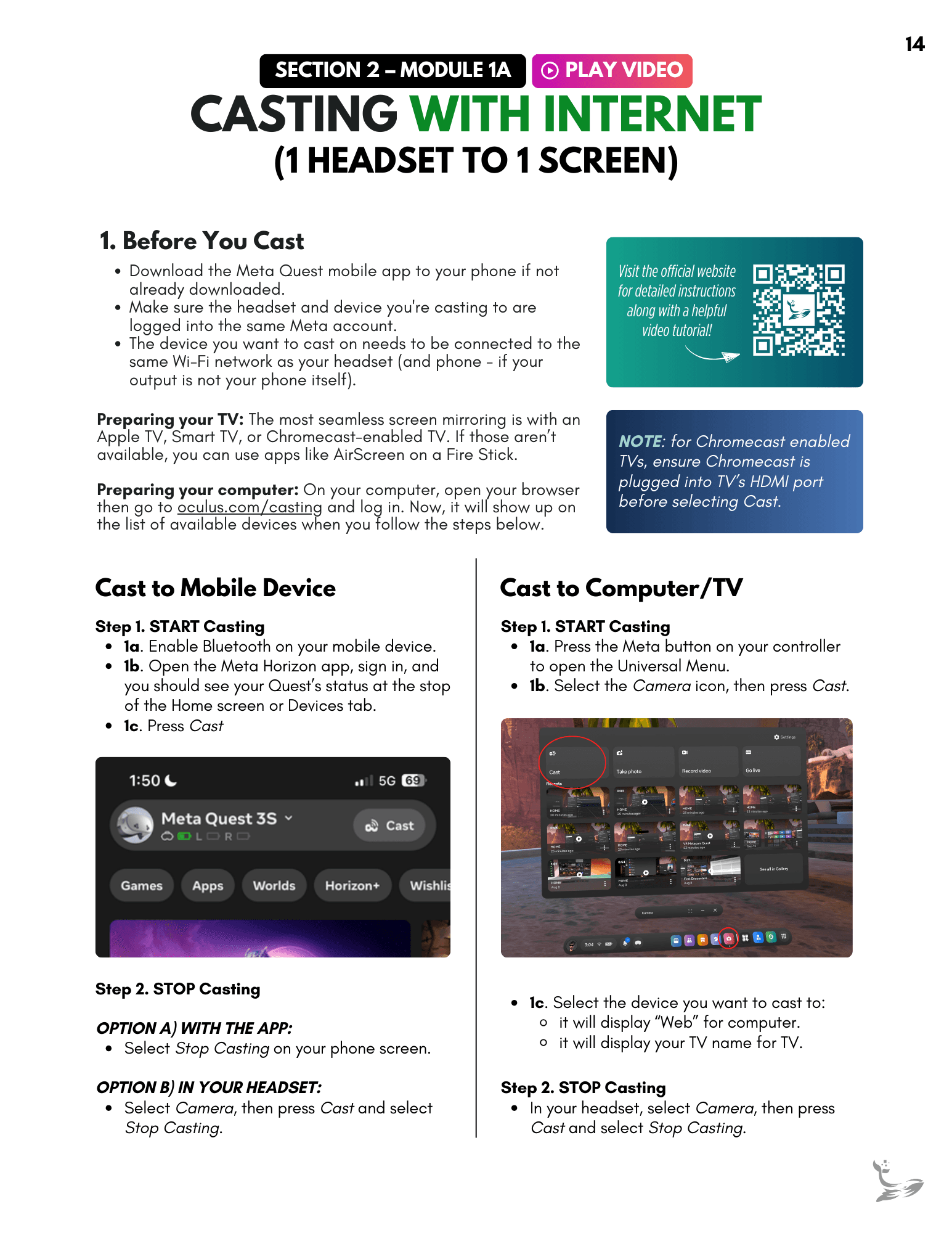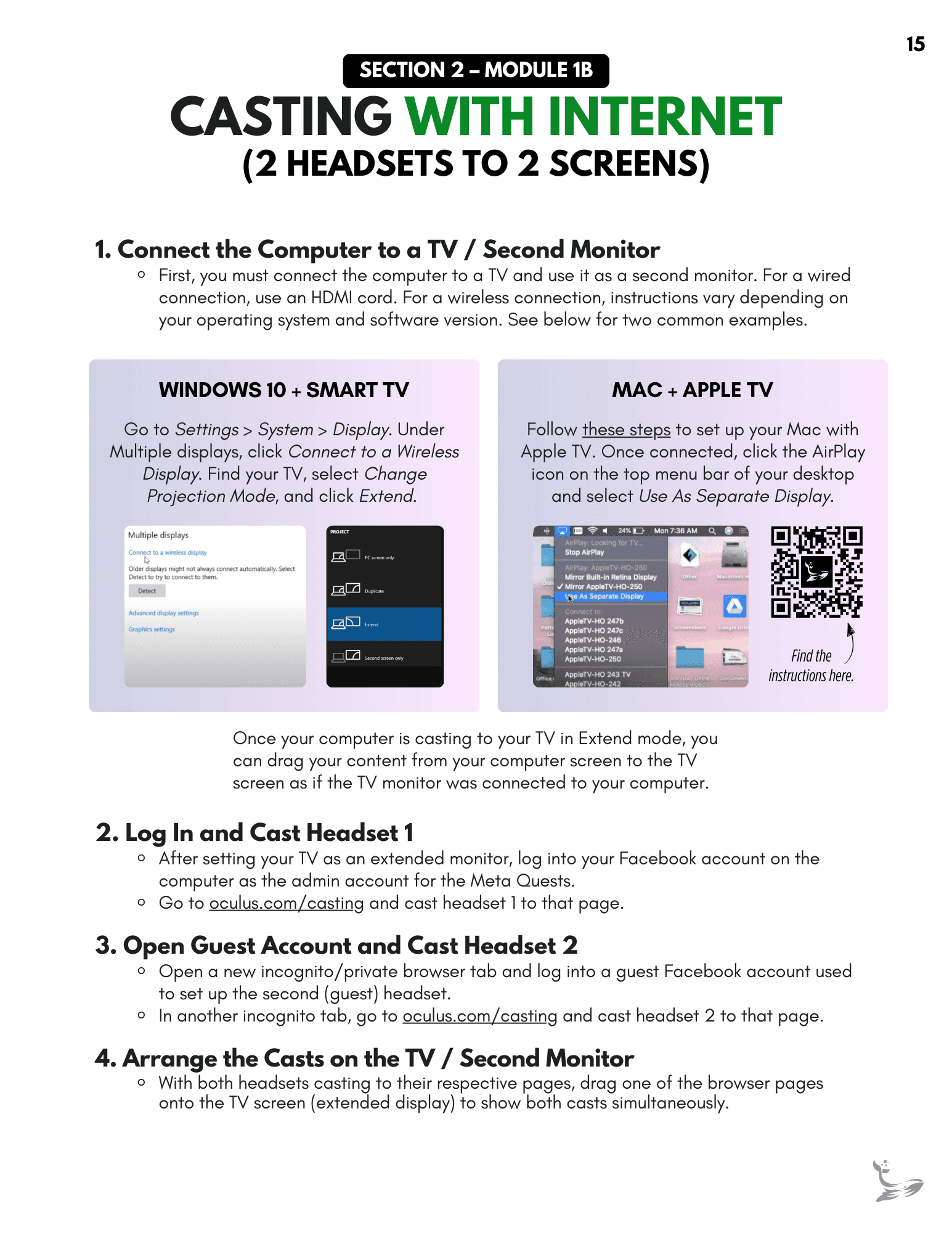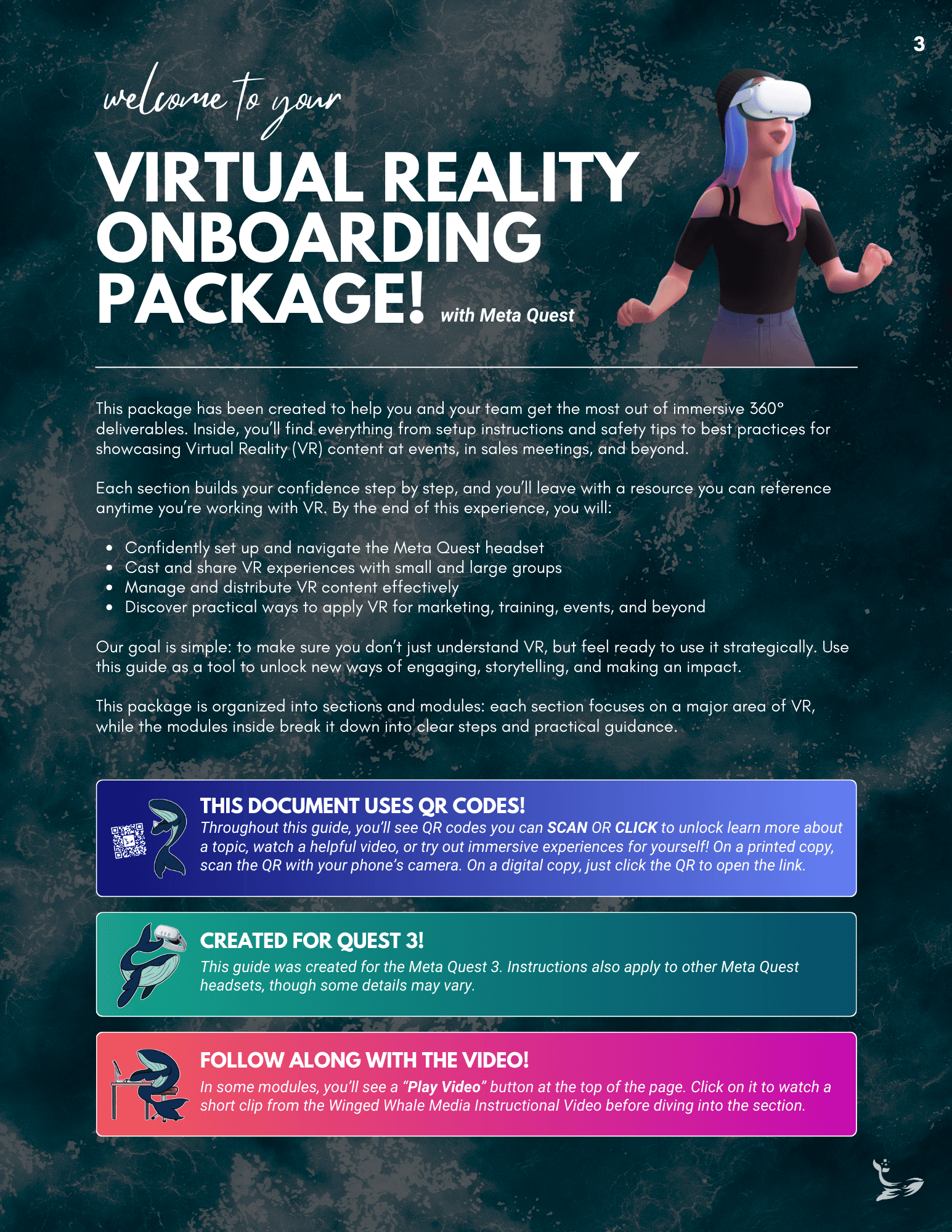 A structured onboarding package was created, combining a modular guide with a companion video to help clients set up their headsets and use their VR deliverables with confidence.